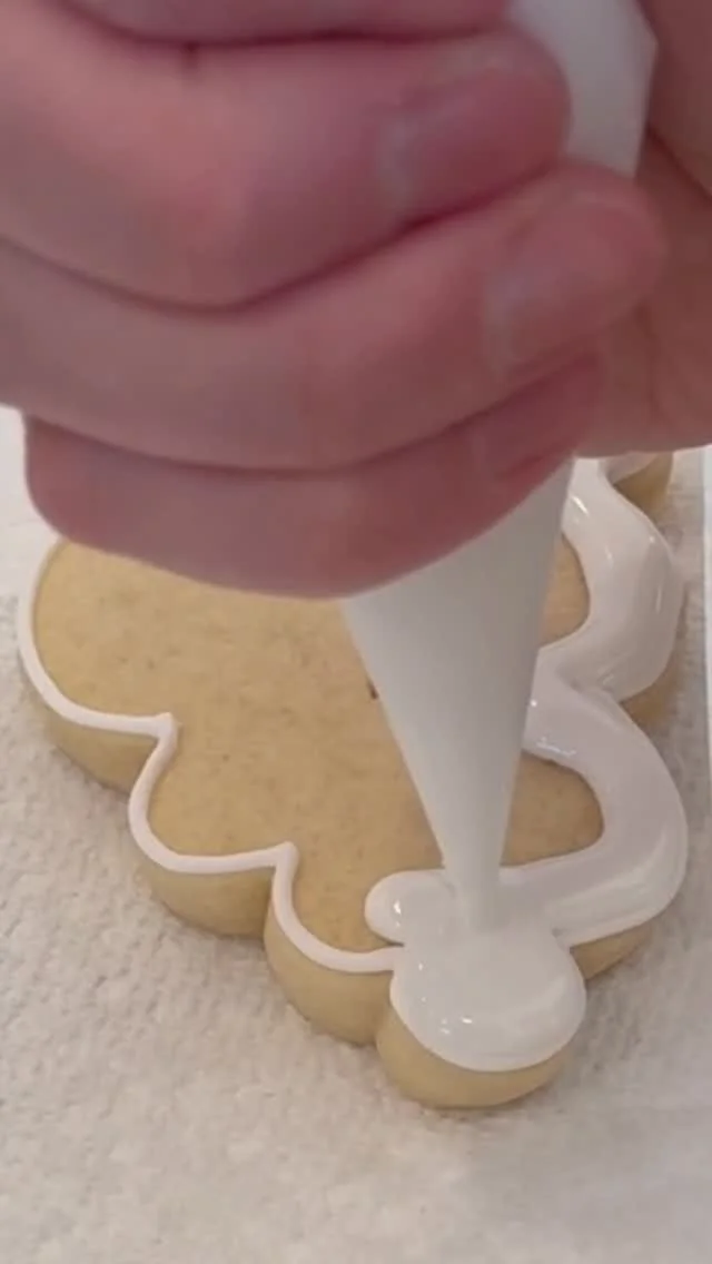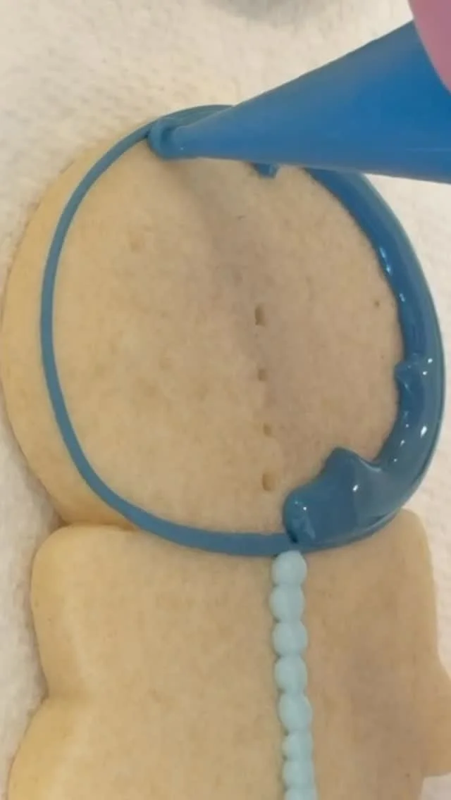 6 cookies heat sealed in bags, 4 colors of icing, and disposable scribes